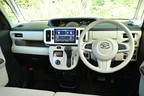 ムーヴキャンバスの内装はセンターメーターを中央に配し、その下にオーディオ、さらにはエアコンパネルという順で配置されている。
