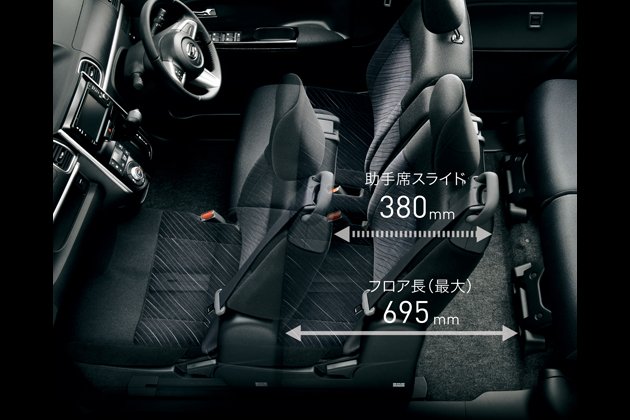 ダイハツ 新型タント シートアレンジ(助手席を前倒し+左リヤシート格納)