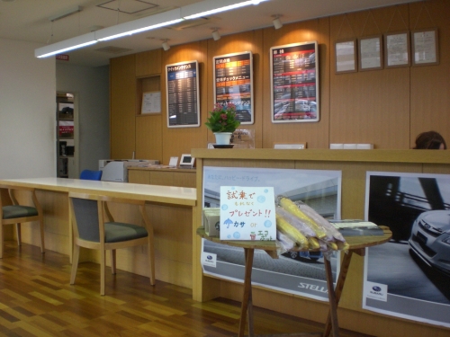 生駒店ショールームはガラス張りなので外から中の様子が見えるようになっています。 1階はサービス受付、商談コーナーがあり広いスペースでゆっくりとお客様とお話できる空間になっています。 2階待合室はソファー・マッサージチェアが2台ありゆっくりとくつろげるスペースとなっており、雑誌も豊富に揃えています。 なかでもキッズコーナーは子供に大人気です。さらに工場の様子が2階から見えるようになっているので、お客様の車がどのように作業しているかを自分の目で確認することができます。 スタッフ13名親身になってお客様の要望にお答えしていきます!ぜひご来店ください。