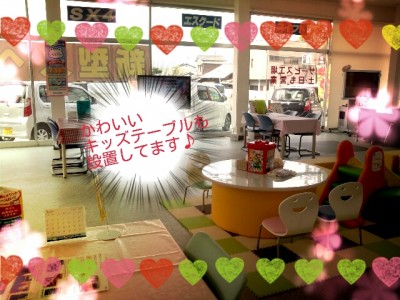 当店は国道209号線沿いに位置し、 CDレンタルショップのゲオさんのお向かいにあります。 広々としたショールームでゆっくりお話できます お客様が待ち時間に退屈されないよう 雑誌やテレビ、キッズコーナーも設置しています☆ 新車購入・自動車保険・車検・修理・板金などなど お車のことなら何でもお気軽にご相談ください。 お飲みものをご用意してお待ちしております!!