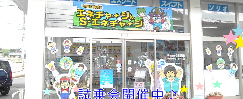 平成15年7月のオープンより、お客様に満足していただけるお店づくりを常に考えて営業しております。中山地区の方のみならず、お気軽にご相談いただければと思っております。おすすめのスイフトを中心に、展示車も多数とり揃えております。小さな営業所で大きなおもてなしの気持ちを持って、ご来店をお待ち致しております。