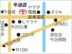 店長より《日頃は、愛媛トヨペット(株)今治店をご愛顧を賜り厚くお礼申し上げます。「トヨペットグリーン」を基に洗練された知的なイメージのショールームやお子様が退屈せず、安全に遊べるキッズコーナー等も設けています。また、お客様がゆったりとリラックスできる居心地のよいスペースからは、テクノショップがみえるようになっております。スタッフ一同皆様に喜んでいただけるよう努力いたす所存でございます。是非、皆様方のご来店を心よりお待ちしております。》 サービスより《愛媛トヨペット今治店では常日頃より、お客様とのつながり絆を大切に、お客様の立場に立って物事を考え、行動し、親しみやすさと丁寧さを心がけたサービスを提供致します。これからも、今まで以上に今治店をご利用ください。顧客満足ナンバー1を目指して!》