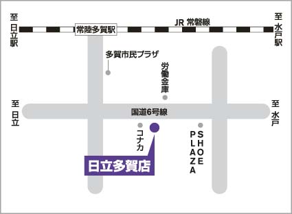 日立の中心にある店舗です。国道6号線のけやき並木にかこまれて 日立多賀店が在ります。 4月から新体制になり より活気あふれる店舗を目指し スタッフ全員お客様に「笑顔」 「まごころ」 「安心」心掛けています。