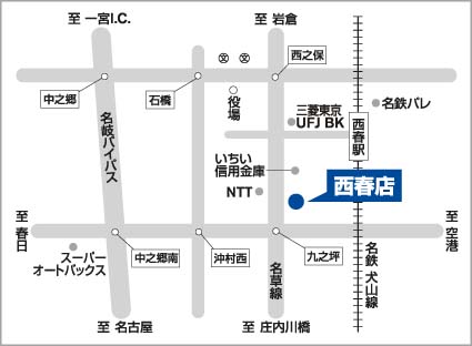 名鉄犬山線より南北方向徒歩5分 EV急速充電器設置店舗です 女性のお客様が気軽にご来店・ご相談いただけるお店づくりを心がけております。