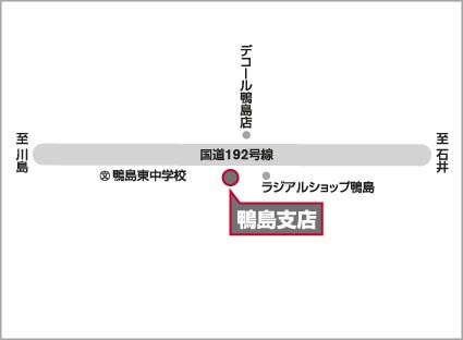 ”お客さまの満足”を大切にスタッフ一同頑張っています。 国道192号線に面した鴨島支店は、スタッフの平均年齢も若いお店です。お客さまの生活の一部になれるよう頑張っています。店内には、ゆったりくつろげるソファーもありますので、ぜひ一度お越しください。