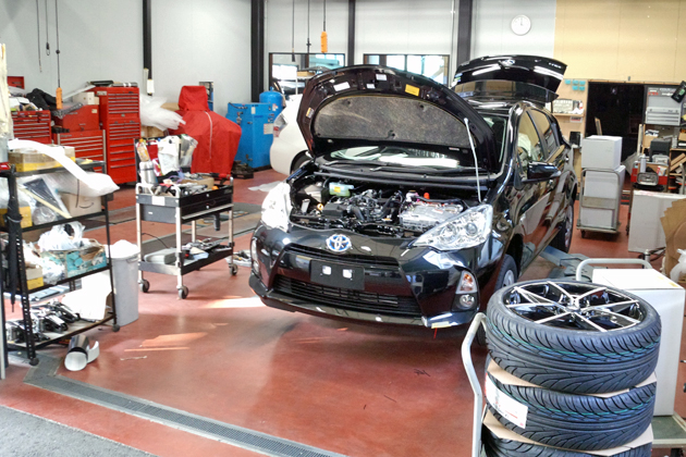 写真はM'z SPEED千葉の専用工房。クリーンな環境の下、1台1台丁寧に専用パーツが取り付けられていく。