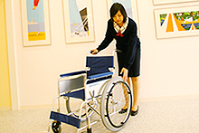 店内はバリアフリーです。高齢者の方や身体障害者の方にも気軽にご利用いただけ、車椅子がそのまま入る福祉車ウェルキャブを常時展示しております。ウェルキャブが端っこになっているお店が多くありますが、戸塚下倉田店では1階で常設しています。今後は、ウェルキャブのセンターも考えています。