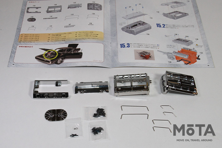 今回もそれほど難しい組み立て作業はなく、写真を撮りながら14号と15号の2号分組み立てても、30分程度で終えることができました。次の16号では、ディストリビューターなどの点火系ということで、元整備士の筆者としてはとてもワクワクしています。