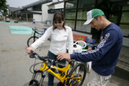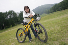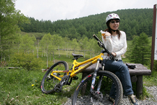 ここのところ雨がよく降りますね~。いくら晴れ女の私でもちょっと弱気に、予定していたドライブスポットを変更しないとマズイんじゃない?なんて思っていたのですが、「大丈夫ですよ。きっと晴れますから。まぁ、雨でもちょっと余計に滑っていただくだけですし~♪」と、ドライブロケ隊からはあっさりしたお返事。「余計に滑っていただくだけって言ったって、下まで滑り落ちたらど~すんのよぉ~っっっ」なんて叫びは届かず、今回は予定通り、自転車でのダウンヒルにチャレンジすることになりました~っ!とはいっても、ツーリングですけどね(実はロケの週末、今年シリーズ参戦しているゴルフGTIカップレースが控えていたので、オッチョコチョイの私の場合は、ケガが怖かったので、ツーリングにしました…)。