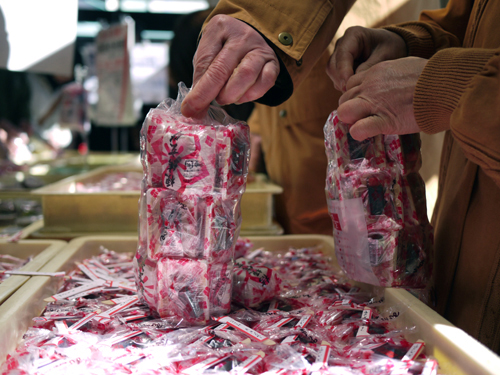 さっそく詰め放題(210円)にチャレンジ! ビニール袋は油断すると切れやすいので注意(破れたら交換してくれて、もう一度挑戦することが出来ます)。
