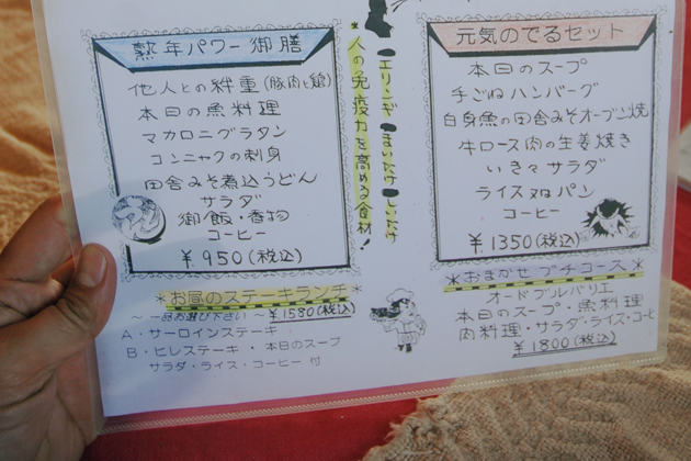 行く度に楽しみな「夢追い人」のメニュー。この手作り感がとても温かいんですね。