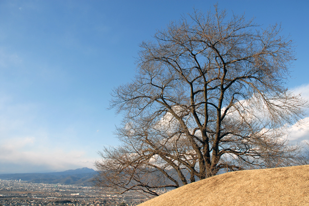 甲府盆地を一望する八代町ふるさと公園はドラマやCMなどのロケ地としても有名です。