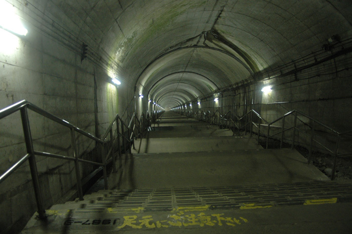 駅の名は、上越線の「土合(どあい)駅」。伝説の「トンネル駅」です。地下鉄ではトンネルの中に駅があって当たり前なのですが、土合駅は群馬~新潟の県境を上越線が越える「清水トンネル」の中にあります。しかも、この駅が伝説と呼ばれるのが、「改札を入ってから下りホームまで果てしなく遠い」こと。しかも駅舎から下りホームに行くには、143mのトンネルへの通路、通路から始まるホームへ降りる階段はなんと462段! 所要時間は約10分。そしてその光景はただただ驚きの一言です。