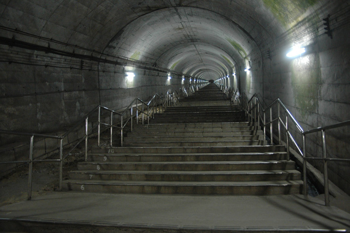 全長338m、462段の階段をやっとの思いで降りてホームに着いても、実は問題は帰りです。階段って、昇る方がつらいのね(涙)。階段脇にはご丁寧に段数のナンバリング。全然362にならない。むしろかえってツラくなるので、いらないです(笑)。