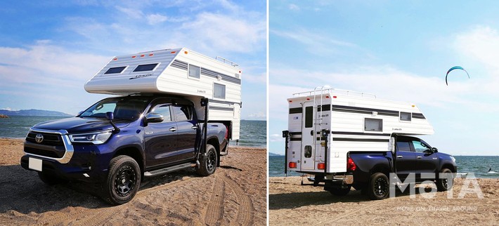 会場では他にも、キャンピングカーライフ研究家の岩田 一成氏が選んだ世界に1台のスペシャルモデル「ハイラックス+J-CABIN HN SPL」が出展される。「ハイラックス+J-CABIN HN SPL」は、トヨタ ハイラックスにキャンパーシェルを積載した「トラキャン(トラックキャンパー)」だ。