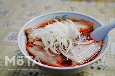 今回はタンタンメン(800円)にチャーシュー(200円)をトッピングしオーダー。ゴマがふんだんに取り入れられた真っ赤なスープに、厚めに切られたチャーシューが浮かべられ、さらにその上に生の玉ねぎスライスがのせられている。食欲をそそられるビジュアルだ。