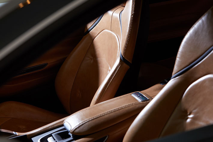艶のあるブラウンレザーの内装で、クラシカルなイタリアンファッションの雰囲気を表現したモデル。
