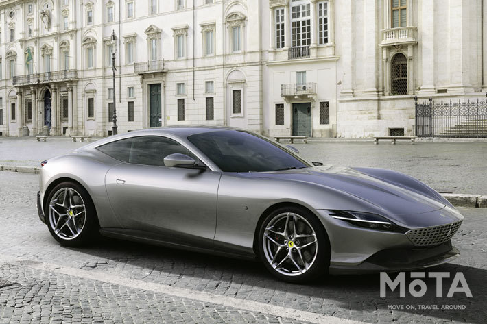フェラーリ ローマは、明るく華やかな1950年代当時のイタリアの首都、ローマの生活をフェラーリ流に表現し、フェラーリジャパン代表取締役社長フェデリコ・パストレッリ氏曰く「イブニングドレスに身を包んだF1マシン」というコンセプトで開発された4座席のスポーツクーペだ。