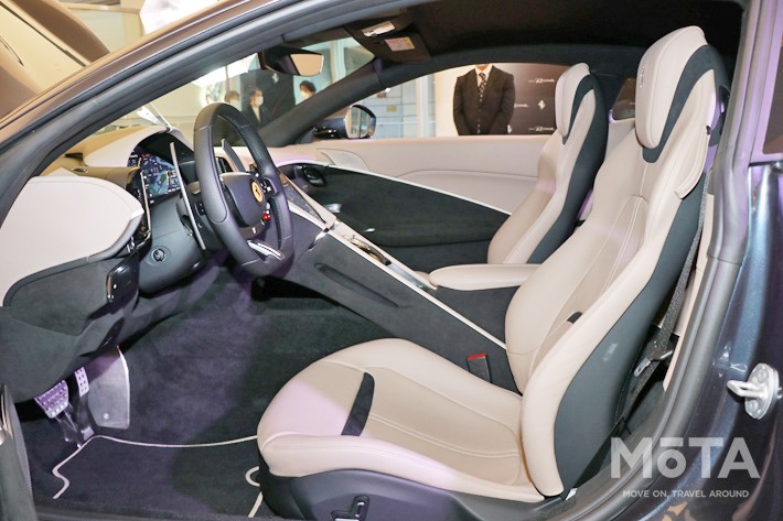 室内はセンターコンソールによって前端から後端まで区切られ、運転席と助手席がそれぞれ包まれている様なデザインを採用。これによりシートに着座した時のコックピット感を高め、車との一体感を楽しむことができる。
