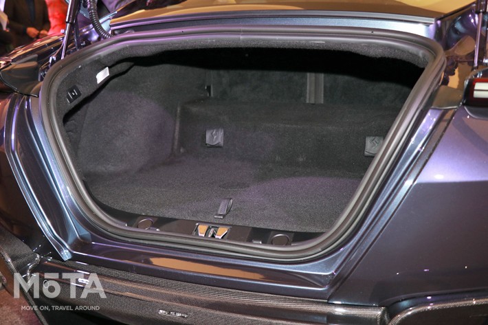 リアシートも同じく高級感のあるレザー仕立てだが、あくまで「2+クーペ」という仕様上、緊急用のシートという立ち位置になる。お買い物時の荷物置きや、子供が座るなど使用用途は限定的だ。