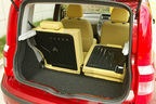 いかにも「働きもの」といった印象のエクステリア・デザインに対し、インテリアは予想以上にポップな雰囲気だった。ベージュがかったイエロー、もしくはブルーのシート・ファブリックは、男性陣にとってはちょっとばかり勇気のいるものかも知れないが…。半ばコンソールと一体化された造形のセンターパネルのデザインがユニークな新型パンダのキャビンだが、スペース的には明らかに前席優先の思想が読み取れる。後席はアップライトな姿勢で高く座る、というスタンスだが、それでも大人にとってはレッグスペースがかなりタイトな印象が拭えない。ラゲッジスペースも「推して知るべし」といった程度。要するに、本来は“2+2”的な使い方をすべきなのがこのクルマという事だろう。