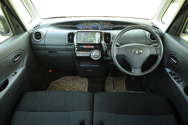 タントは開口部の広い左側のドアを含め、子育て世代向けの機能を充実させた。助手席のバックレストを前に倒すと背面がテーブルになり、収納設備も豊富。ただし、後席はチャイルドシートの装着を前提にして、座り心地は割り切った。
