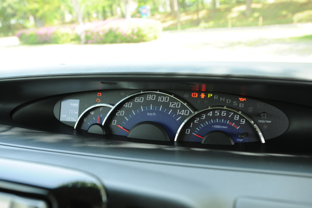 タントはメーターの配置が個性的。ライバル2車はハンドルの奥側に備わるが、タントはインパネ上部の中央に装着した。視認性は一長一短。視線がやや左に逸れるが、上下方向の移動は少ない。メーターとドライバーの間隔が離れるので、目の焦点移動も抑えられる。