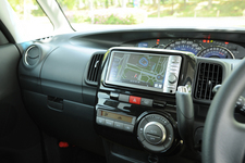 内装を見るとエアコンのスイッチは左側に張り出すが、比較的高い位置に装着されて操作はしやすい。カーナビの画面も見やすく、質感にも不満はない。