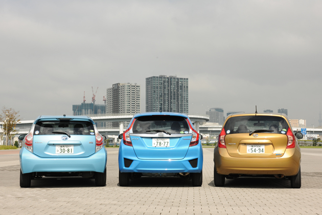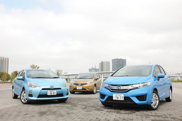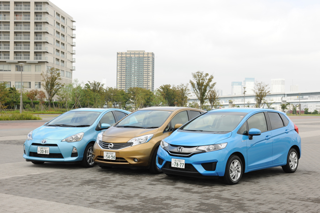 左からホンダ フィット、日産ノート、トヨタ アクア