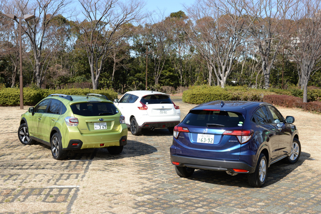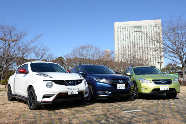 3台比較(ホンダ ヴェゼル/スバル XVハイブリッド/日産 ジュークNISMO)