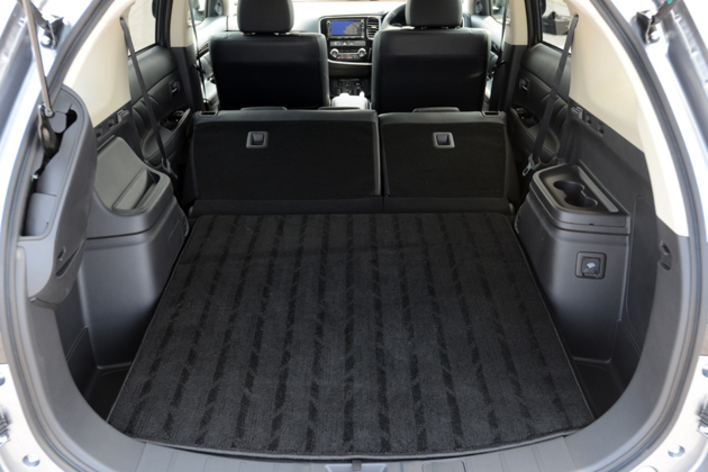 後席を前方に倒すと床面積をさらに広げることが可能で、両車ともに60:40の分割可倒方式にしている。アウトランダーPHEVの場合、座面を持ち上げて背もたれを倒すと、ほぼ真っ平らな荷室になる。