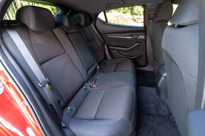 またMAZDA3のハッチバックは、サイドウィンドウの面積が著しく狭いために、後席に座ると圧迫感が生じる。子供など小柄な同乗者は、周囲の風景がかなり見にくい。つまりMAZDA3は明らかに前席優先で、インプレッサは4名乗車にも適する。