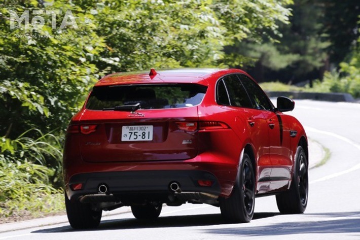 スポーツカーメーカーが開発したSUV だけあり、ジャガー自らがFペイスを「パフォーマンスSUV」と名乗らせるように、スポーツカーを思わせる流麗なデザインと優れたハンドリングを誇る。一方で、クーペルックながらSUVとしての実用性はしっかり備えており、大人5人とその荷物を飲み込む広い室内と荷室を備えている。駆動方式は全車4WDだ。