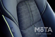インテリアも六角形のエンボス処理をしたスウェード調&合成レザーのシート表皮としたうえで、シートステッチやパイピング、エアコンルーバーにライムグリーンを添えてアウトドアウェアのようなコーディネートとしている。