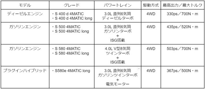 ▼メルセデス・ベンツSクラス ラインアップ一覧表