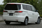 フロントマスクはグリル上部のHマークとメッキ部分が、エリシオンを主張する。サイドからリアにかけては、スライドドア用のサイドレールとテールランプのデザイン処理が上手。個性的に仕上がっている。リア上部を半周するハイマウントストップランプ内蔵の テールゲートスポイラーは、ディーラーオプションだが、これはぜひほしいアクセサリー。エリシオンのリアビューを引き締める。