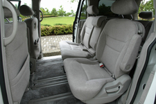 リアシートに移動してみる。ウォークスルーもできるが、左右スライドドアから乗る。サイドステップはないが、乗りこみやすい。サードシートに乗りこむときはセカンドシートをチップアップさせる。これも操作しやすく、使い勝手はよい。もう少しスライドドア が後方まで開くとさらに便利な気がするがこのスライドドアは閉まり方がよい。音も小さく、重厚な感じでカチリと閉まる。上級なミニバンという雰囲気だ。