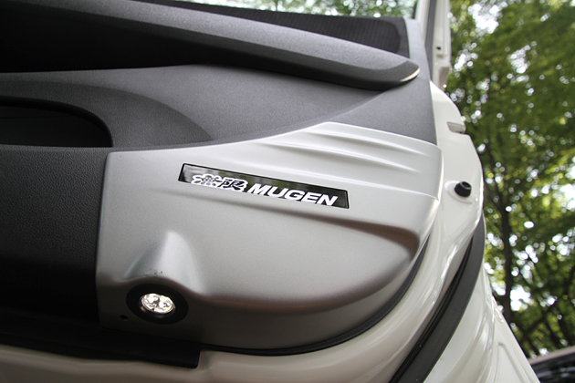 運転席、助手席のドアインナートリムにLED発光式の無限ロゴマークを配したガーニッシュ。開口と同時に足元をLEDライトが照射し乗降をサポートするだけでなく、発光する無限ロゴマークが夜間でも無限スピリットを演出/31,500円