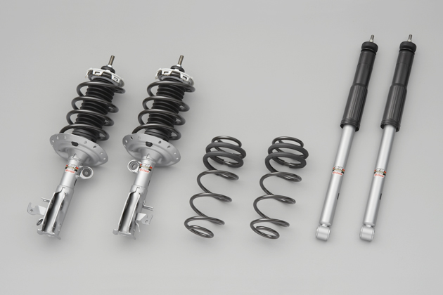 IMAバッテリー搭載によるHYBRID特有の前後重量バランスに対応し、専用チューニングを施したスポーツサスペンション。スポーティなハンドリングと快適性を両立。ダンパーとスプリングのセット。車高は-20~-25mmの設定/99,750円