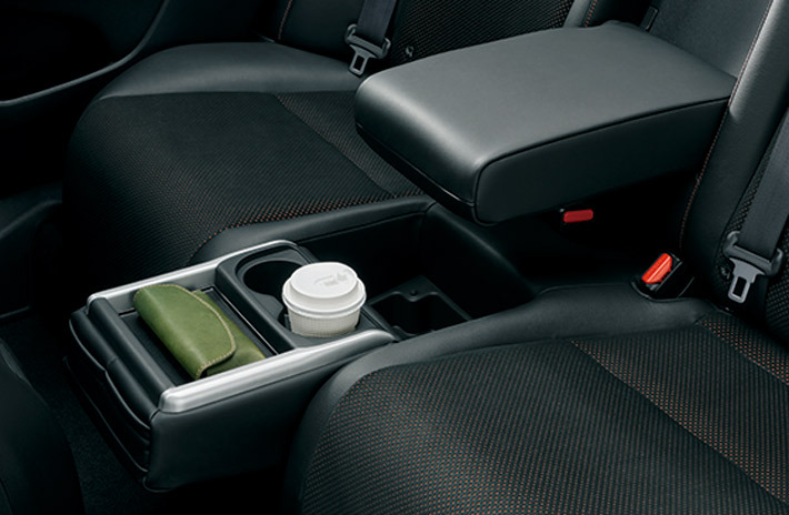 5人乗りの快適性をさらに高めるのが、背もたれの中央を降ろして使う大型のアームレストと、座面の中央部分を反転させるテーブルだ。テーブルにはドリンクホルダーやポケットも内蔵されている。
