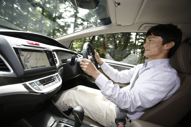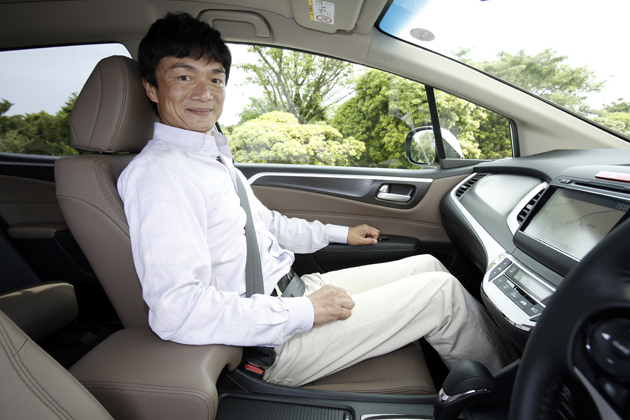 1.5リッター VTEC-TURBOの走りを堪能中!の岡本幸一郎レポーター。