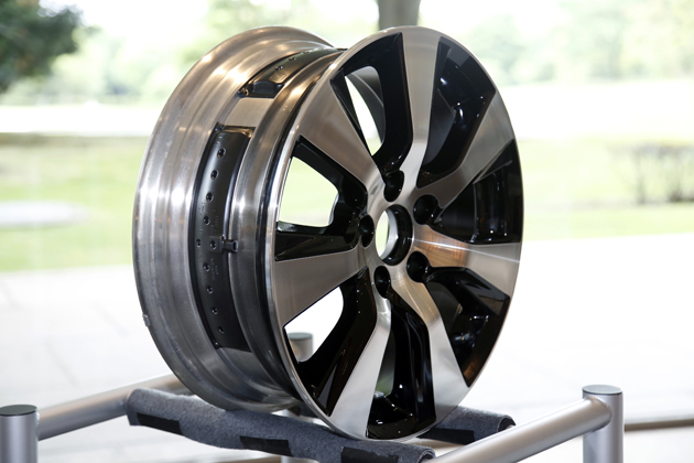 ハイブリッドXモデル同様に中空構造のレゾネーター(消音装置)がアルミホイールに配された「17インチ ノイズリデューシングアルミホイール(切削xブラック)」が備わる。