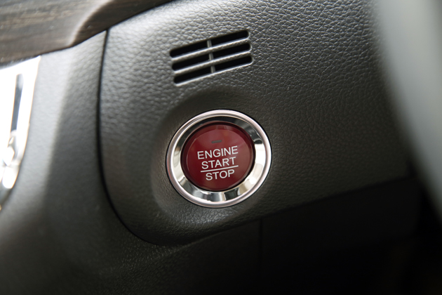 スポーティな赤の加飾入りの「プッシュエンジンスタート/ストップスイッチ」