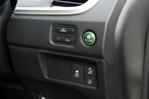 エコ運転をアシストする「ECON」モードスイッチはインパネ右側に装着。