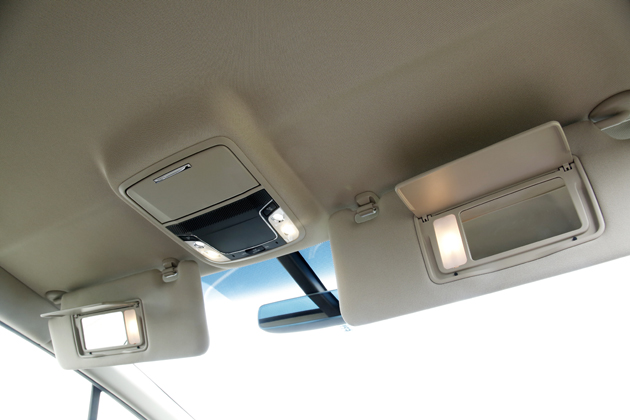 サンバイザーには運転席・助手席ともに照明付きのバニティミラーが備わる。