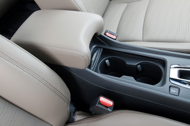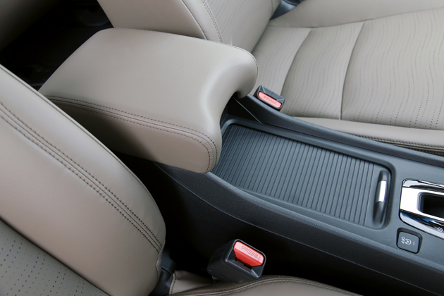ハイブリッドシステムの「IPU」(intelligent Power unit)をセンターに配していたハイブリッドモデルとは異なり、ジェイドRSではセンターコンソールの収納部を十分に確保した。