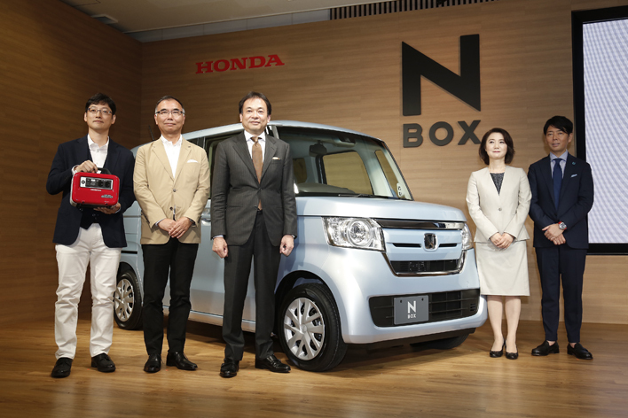 本田技研工業株式会社 執行役員 日本本部長 寺谷公良氏は、「6年前に、日本にあたらしいのりものを提供するため、N-BOXを皮切りにNシリーズがスタートしました。既存の軽自動車の枠を超えてあらゆるニーズに応えることで、日本に新たな価値を提案してきました。2代目となる新型N-BOXは、豊かな生活を実現するクルマを突き詰めることで、大幅な進化を遂げました。軽量化による軽快な走りや多彩なシートアレンジに加え、先進安全運転支援システムのホンダセンシングをホンダの軽乗用車として初めて全タイプに標準装備しました。新型N-BOXを皮切りに、Nシリーズは今後もお客様に豊かな生活を提案出来るよう、シリーズ展開を行っていきます。」とコメントした。