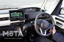 初代N-BOXの隣に置かれた現行N-BOXには、最新の9インチカーナビを搭載。ダッシュボードから溢れんばかりの大画面ディスプレイは視認しやすく、使いやすいと感じました。