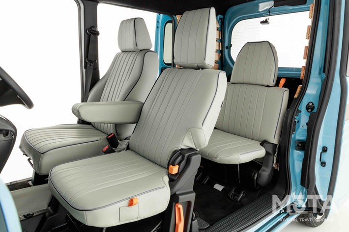 丸型ヘッドライトにフェイスチェンジできるフロントバンパーを装着することで、ネオクラシックな外観に変身。さらに外装に合わせたビーチテイストで超オシャレな内装も用意されており、サーフボードを乗せて遊びに使いたくなるN-VANに仕上がっています。