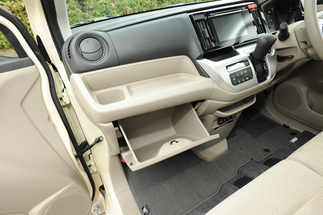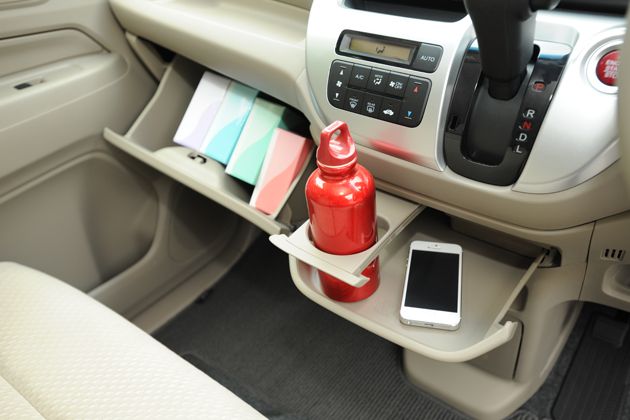 グローブボックスとスライドセンタートレイ(ドリンクホルダー&トレイモード)